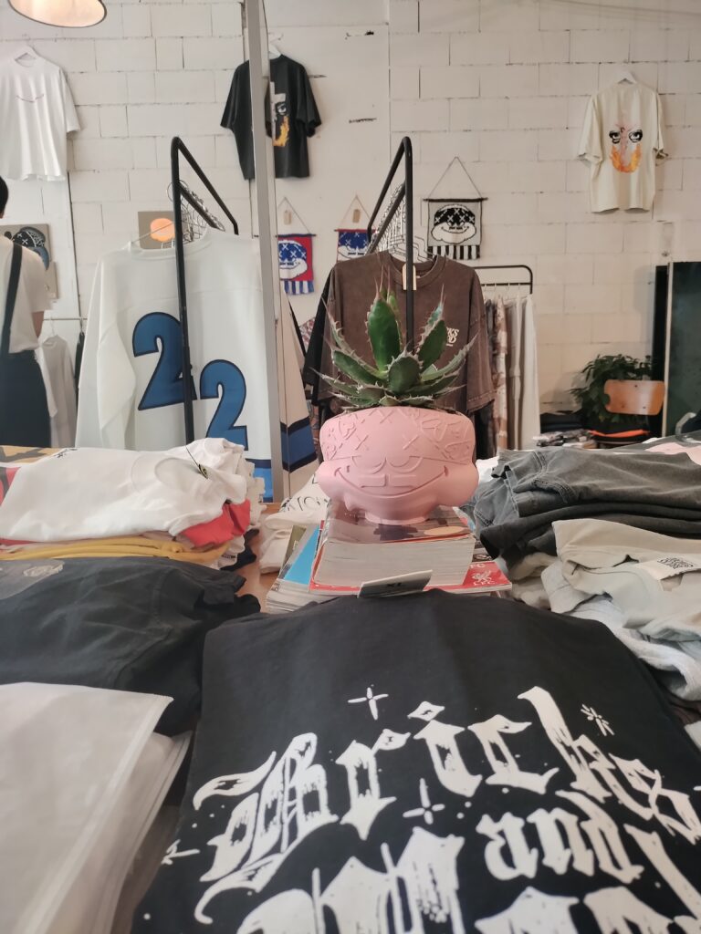 もうちょっと体を起こすためにコーヒーを飲みに行く。247pokoらのポップアップもある。ゴムかマシュマロみたいにフワフワした雰囲気の鉢植えが売っていた。パステルカラーの香立てとのコラボらしい。香立ての方は同じような素材と色でもソリッドな雰囲気がるのが不思議だ。青いものを撮った写真のZINEを作っている人がいた。アメリカーノのスッキリしつつも普段家で作るコーヒーより濃い味は嬉しい。ホットを頼むと外が暑くても風が涼しく感じる。