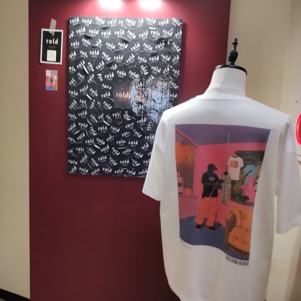 その後、ワードアップ隣のビルの古着屋roldでjunta氏のポップアップを観に行く。先刻、河童氏から仕入れた情報だ。カエキマエで観た記憶はまだ新しい。その割にテクスチャの上に別の線があって、スタイルが深くなっていて驚いた。より具体的な背景がある方がシマりが良くなるタイプらしい。