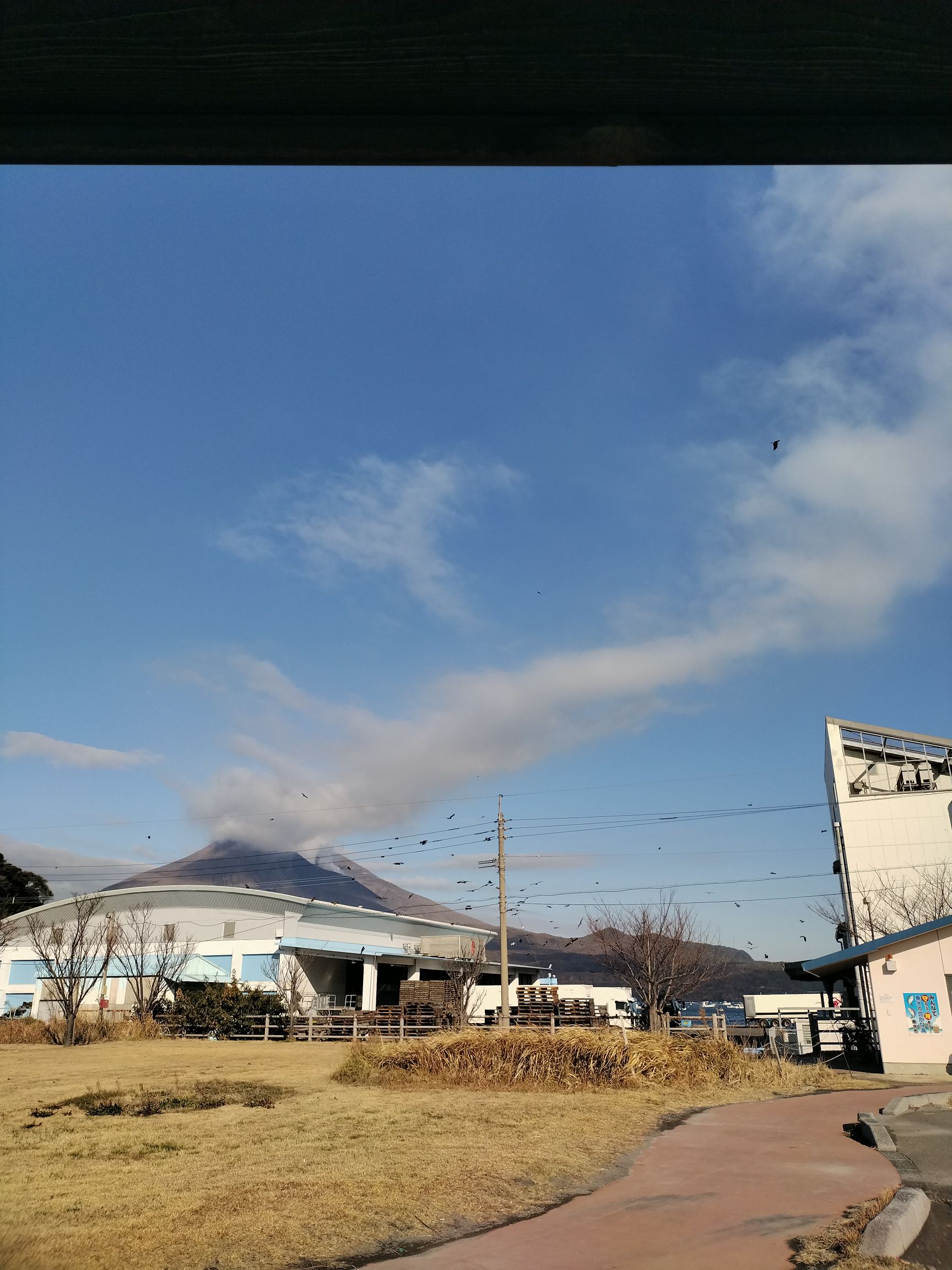 垂水の漁港付近。鹿児島県民は桜島を見慣れないアングルで見ると新鮮な気持ちになるのだ。あと、なんか鳥が多い。