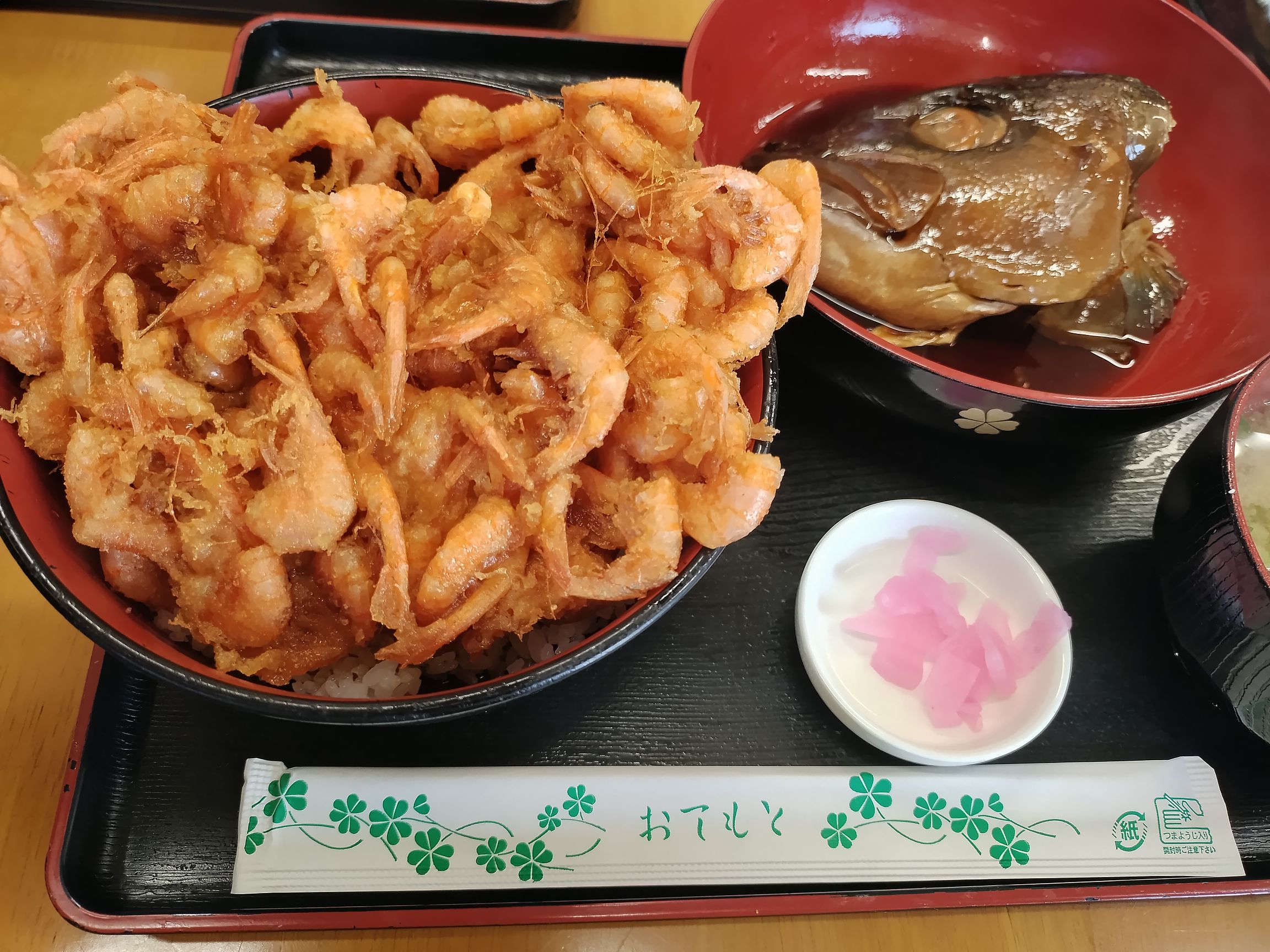 言っちゃあナニだが、加減というものを知らない定食が来た。エビのかき揚げは3枚乗っていた。味は良かったのだが、それ以上にインパクトが勝つ。