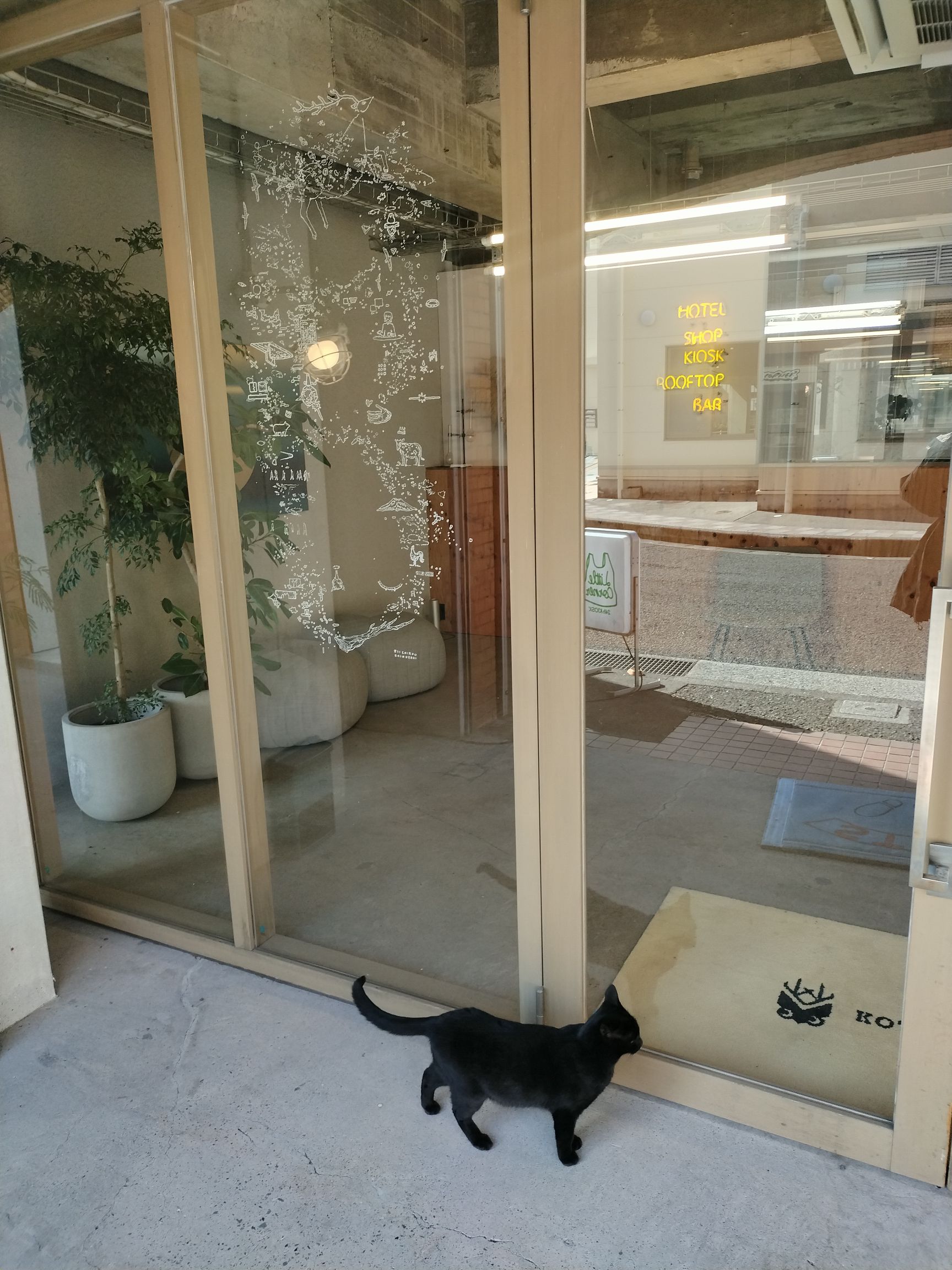 KOTOBUKI HOTELに行く。篠崎理一郎氏の作品が数点ある。鹿児島以外にも氏の作品はあると思うが鹿児島ではそこそこ頻繁に見るので、ちょっとした風物詩のように感じる。コンクリートで無機質な雰囲気の売店があり、電子決済で24時間営業だった。