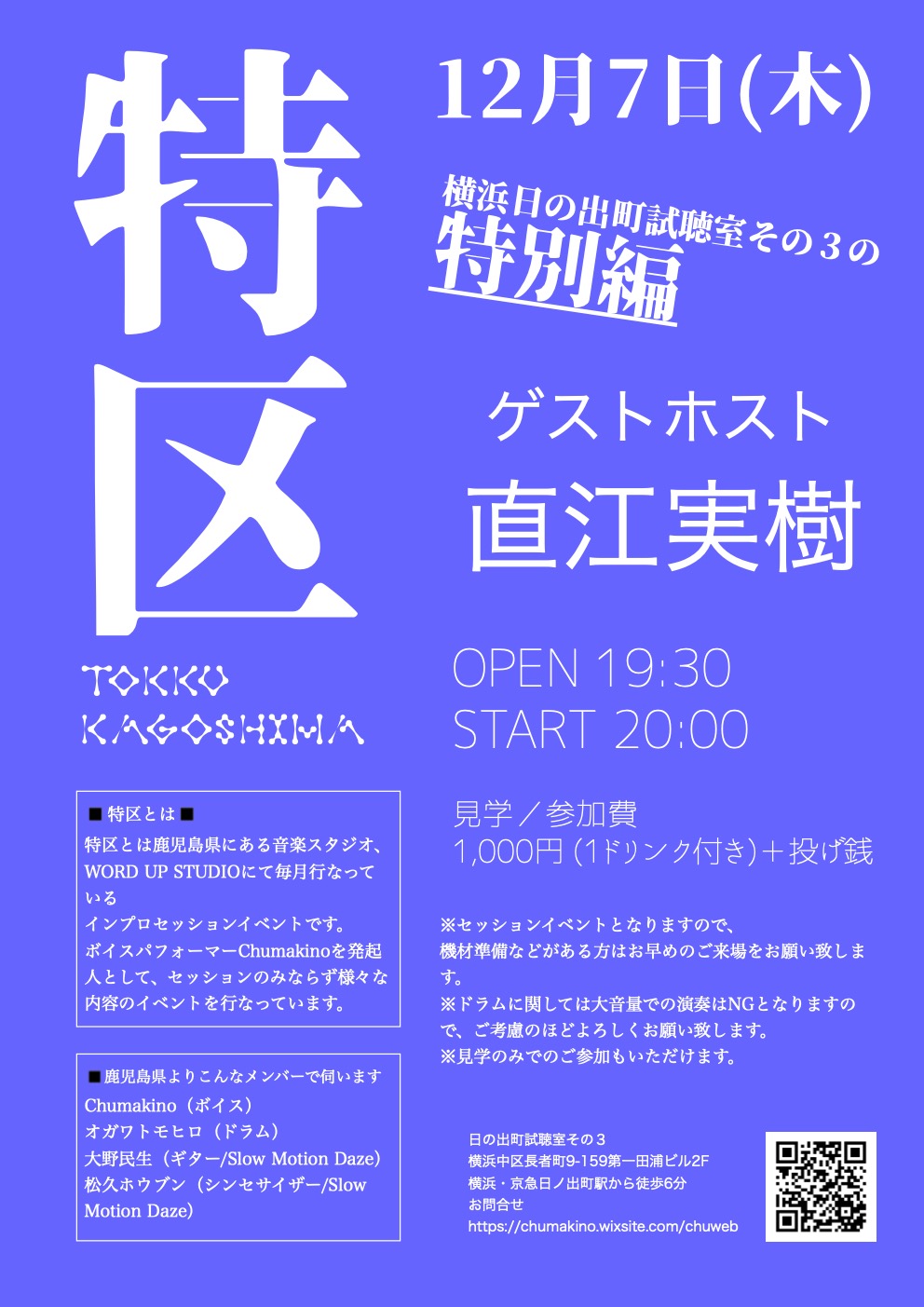 見学/参加費:1000円(1ドリンク付き」)+投げ銭