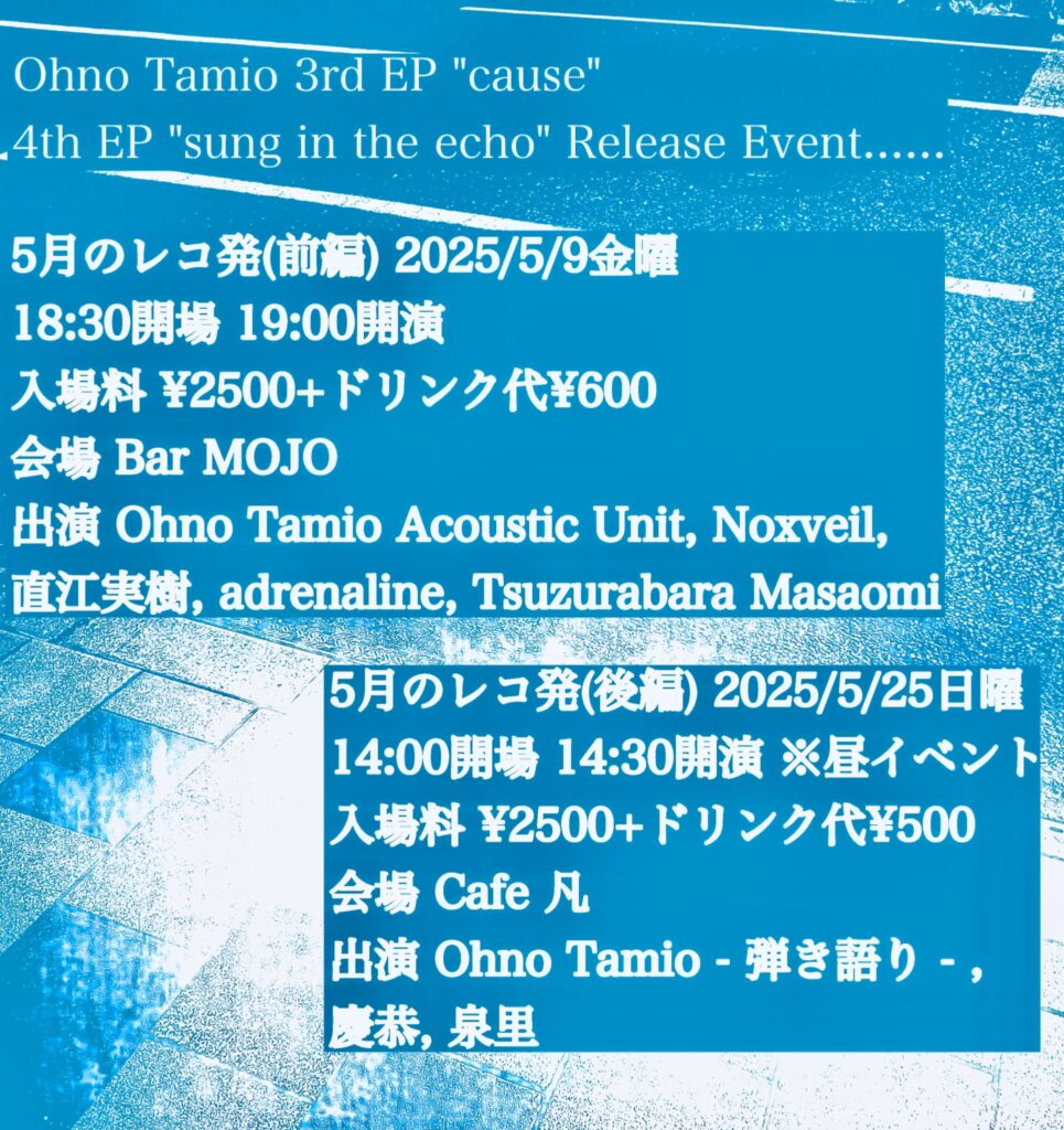 イベント名:Ohno Tamio 3rd EP “cause” 4th EP “sung in the echo” Release Event「5月のレコ発(前編)」
