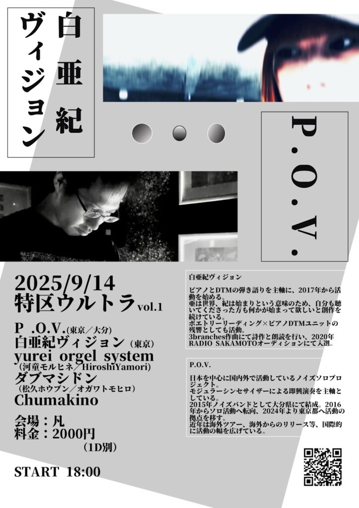 出演者:ダブマシドン(松久ホウブン/オガワトモヒロ)/ P.O.V. / 白亜紀ヴィジョン / yurei orgel system(河童モルヒネ/HiroshiYamori)/ Chumakino